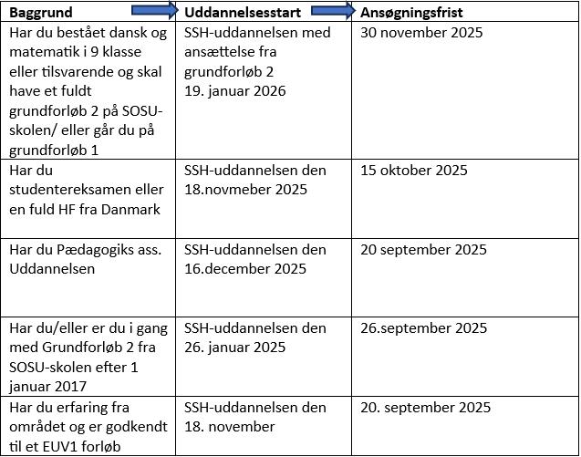Da der er mange forskellige måder at starte uddannelsen på, er der også forskellige ansøgningsfrister afhængig af din baggrund.